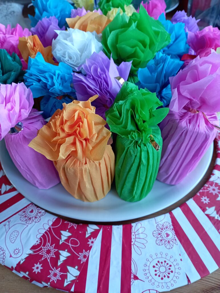 Puis, enroulés dans du papier crépon,
