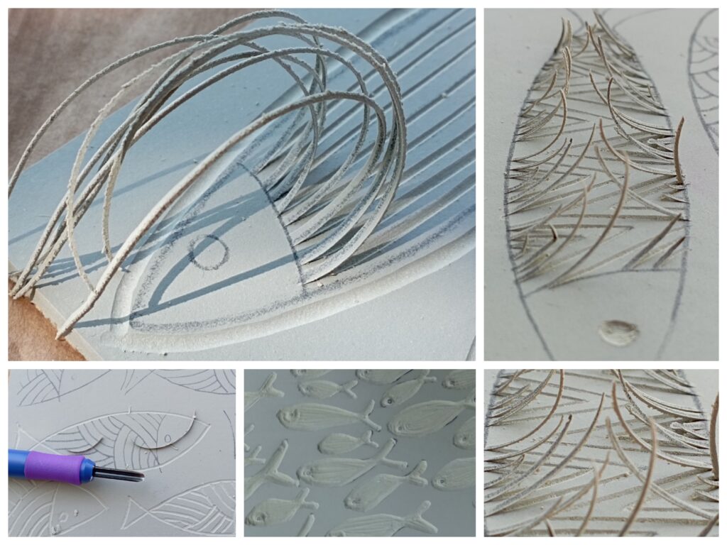 des plaques de linoléum, des gouges,